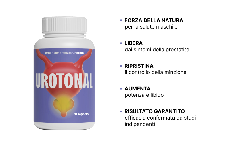 Urotonal è un rimedio naturale altamente efficace contro la prostatite che aiuta a risolvere i problemi di potenza e a migliorare il funzionamento del sistema genito-urinario. Grazie ai componenti naturali accuratamente selezionati, Urotonal migliora la circolazione sanguigna, favorisce la normalizzazione della produzione di testosterone e il ripristino dell’erezione. Il prodotto è adatto agli uomini di tutte le età ed è efficace non solo per eliminare la disfunzione, ma anche per mantenere la salute della prostata e la salute maschile in generale.
